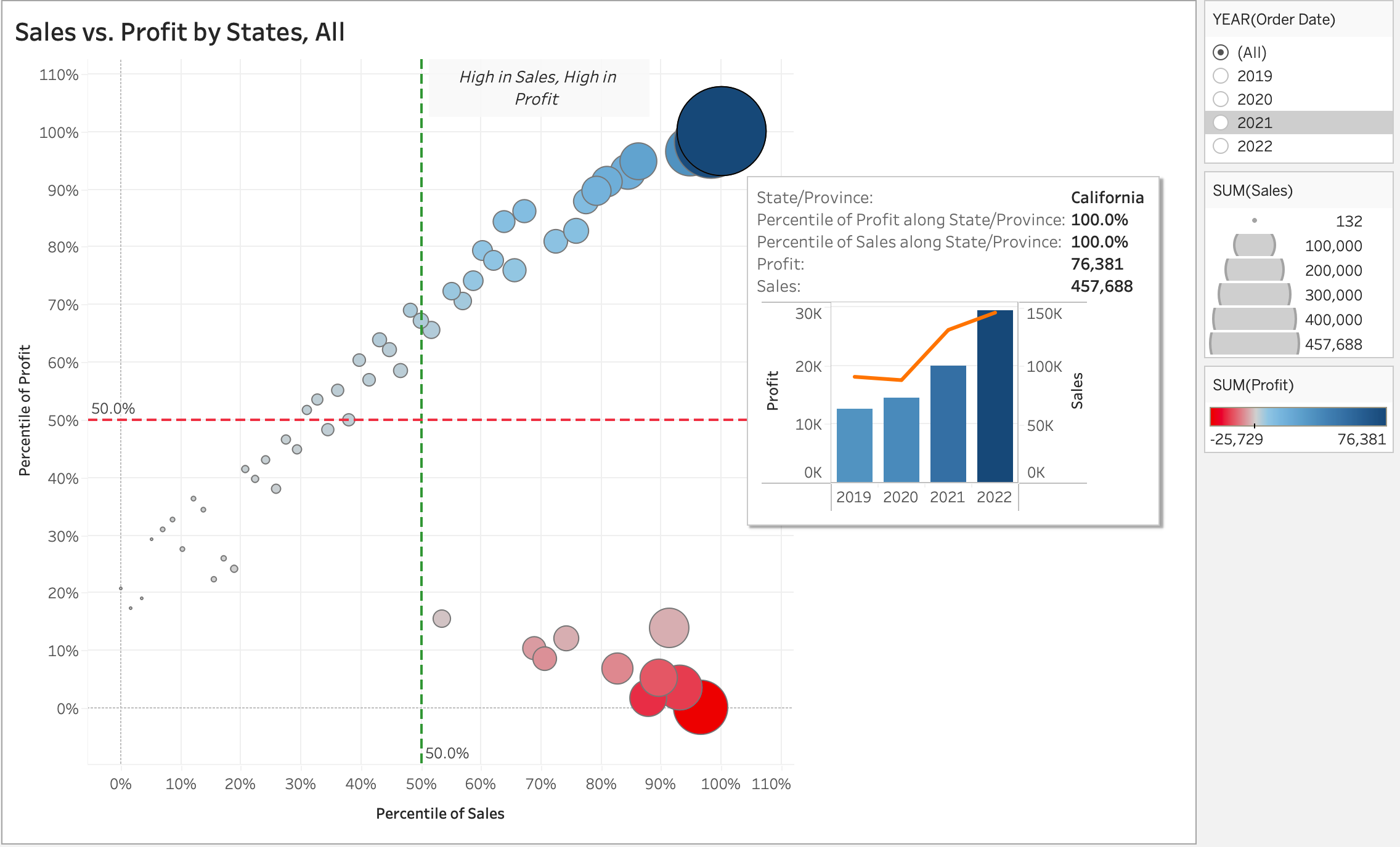 Visualization of Sales and Profit Summary of a store using Tableau Desktop.