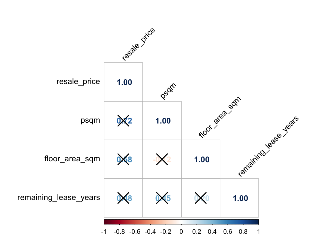 First, we transform the data by extracting year and month from column month, and calculating the remaining lease years and price per square meter, using the tidyverse library.